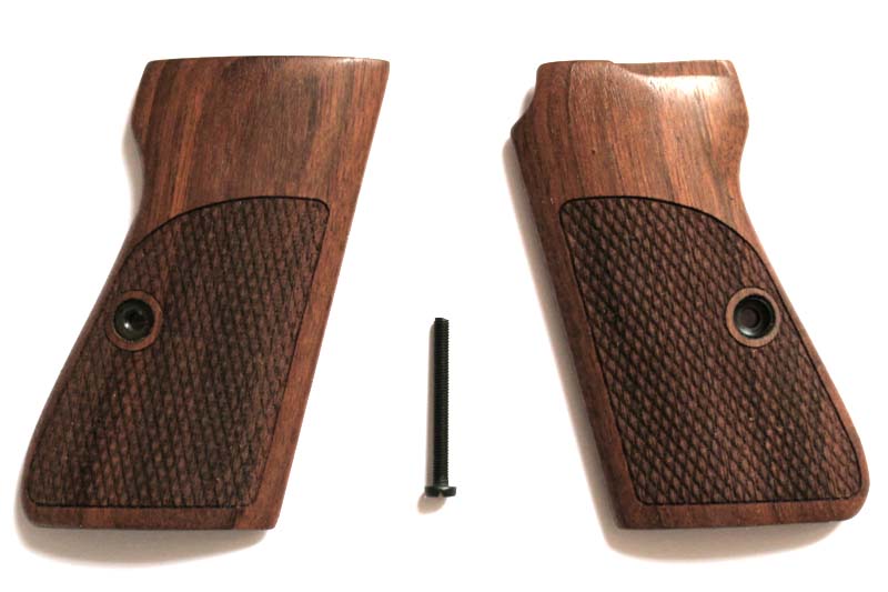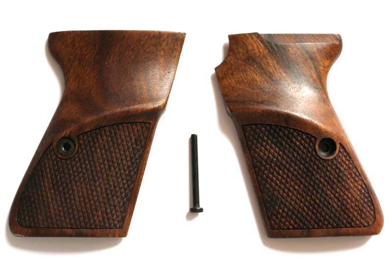 Orechové drevo, povrchová úprava v tvare rybina, gravírované logo Walther, anatomický tvar.
